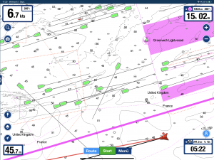 Wir fuhren unterhalb SO des Verkehrtrennungsgebietes an der französischen Küste entlang. Viel Verkehr an der engsten Stelle des Kanals bei Dover Calais. Aber alles super geordnet. Wie auf einer Schnur eingefädelt fuhren die Schiffe auf den Seestraßen schön neben und hintereinander. Wir hatten nur Querverkehr an den Häfen aber Dank AIS kein Problem.