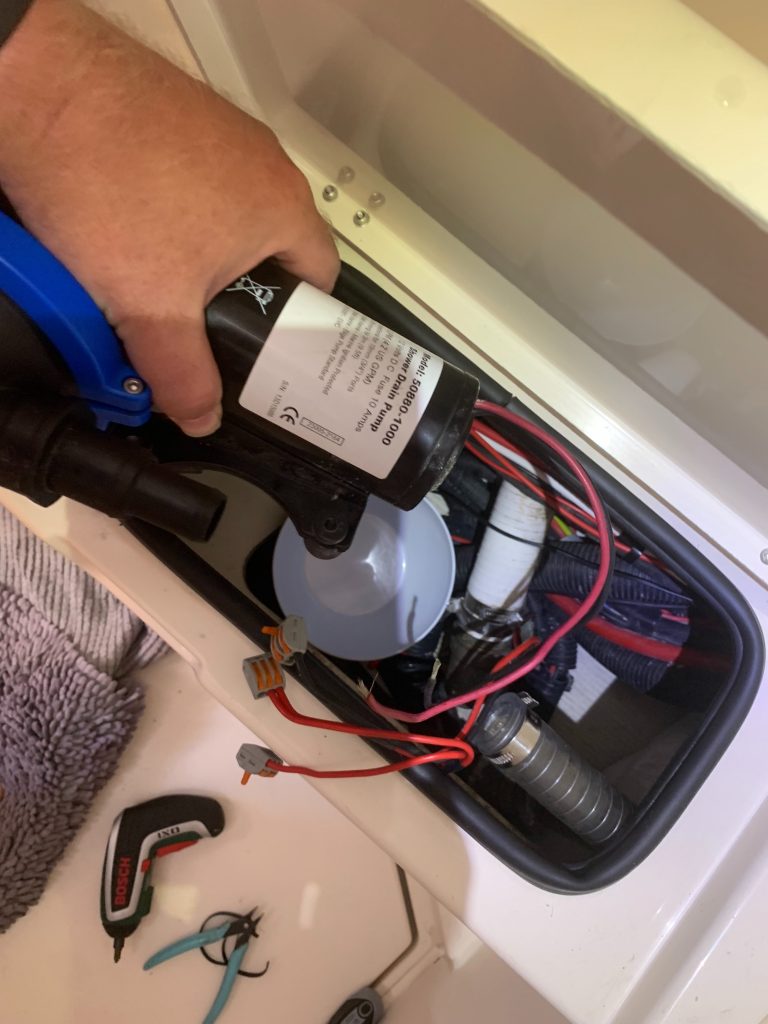 Zeit für kleinere Reparaturen: Austausch der Bad- Bilgenpumpe und des Steuerbord Navigationslichtes